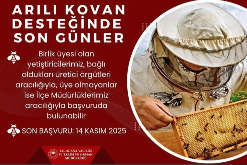 Adana İl Tarım ve Orman Müdürlüğü, kentteki arı üreticilerine yönelik "arılı kovan desteği" programı için son başvuru tarihi uyarısında bulundu. Müdürlük, destekten faydalanmak isteyen üreticilerin müracaatlarını bugün mesai bitimine kadar tamamlamaları gerektiğini hatırlattı.