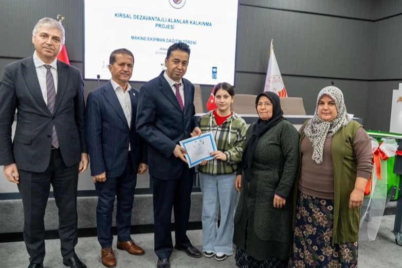 Adana’da "Kırsal Dezavantajlı Alanlar Kalkınma Projesi" (KDAKP) kapsamında 16’sı kadın 32 çiftçiye, yüzde 100 devlet desteğiyle hamur yoğurma ve ceviz soyma makineleri hibe edildi. Makine teslim programı, Adana İl Tarım ve Orman Müdürlüğü Toplantı Salonu’nda gerçekleştirildi. Adana İl Tarım ve Orman Müdürlüğü Toplantı Salonu'nda gerçekleştirildi. Programda konuşan İl Tarım ve Orman Müdürü Atilla Bayazıt, KDAKP'nin kentte 7 ilçede yer alan 8 Ekonomik Kalkınma Kümesinde (EKK) başarıyla uygulandığını belirtti.