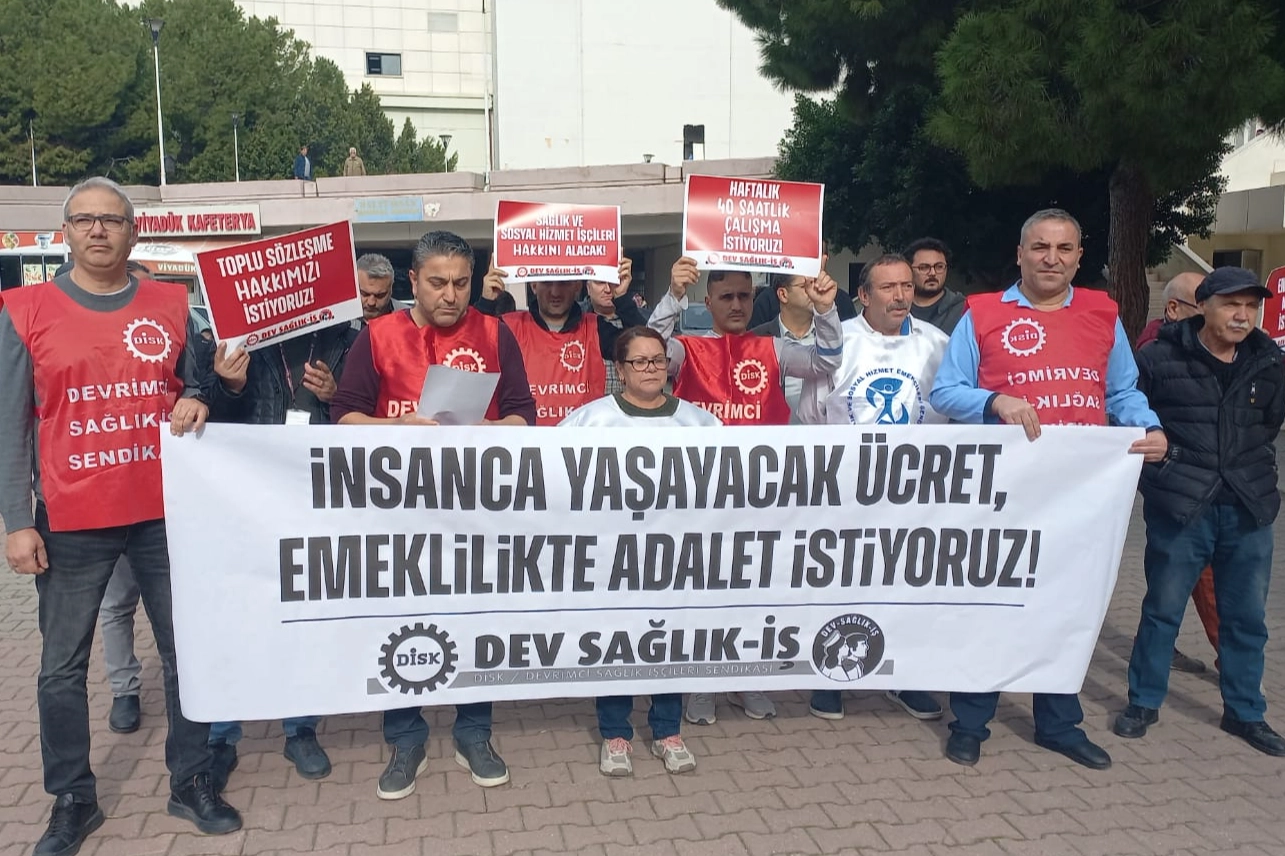 “Emeklilikte adil gelir dağılımı sağlanmalı”Devrimci Sağlık İş Çukurova Bölge Başkanı Hüseyin Türkmen 2025 yılında ekonomik anlamda yaşanabilecek durumlara değinerek, “Bugün Adana'dan İstanbul'a, İzmir'den Sivas'a, Osmaniye 'den Tekirdağ'a, Manisa/ Soma'dan Antalya 'ya, Mersin'den Diyarbakır’a sesimizin ulaştığı her yerde gelirde, vergide, emeklilikte ve ülkede adalet talebimizi dile getirmek için bir araya geldik. 2025 yılına sarkıtılırlarsa önemli kayıplar yaşayacaklar. Böylece aynı şartlarda emekli olanların aylık ve gelirleri arasında ciddi bir uçurum söz konusu olacak. Bu uçurum, emekli aylıklarının hesaplanmasında esas alınan güncelleme katsayısının belirlenmesi yöntemindeki karışıklıktan ve yüksek enflasyondan kaynaklanmaktadır. Bu adaletsizlik nedeniyle sağlık ve sosyal hizmet kurumlarından emekli olmak isteyenlerin sayısı artmıştır. Emeklilik başvurusu yapan mesai arkadaşlarımızın yerine nasıl bir istihdam oluşturulacağı konusunda bir belirsizlik vardır. Bu durum işyerlerimizde iş yükünün artmasına, sunduğumuz sağlık ve sosyal hizmetin niteliğinin azalmasına yol açacaktır. Bu adaletsizliği gidermek bir cümlelik yasa değişikliği ile mümkündür. Konfederasyonumuz DİSK, bu konuda bakanlığa ve TBMM’ye taleplerini iletmiş bu talepler kamuoyu ile de paylaşılmıştı. Çalışma ve Sosyal Güvenlik Bakanı ve TBMM bu adaletsizliğe karşı derhal harekete geçmelidir. Asgari değil insanca yaşamak istiyoruz” dedi.