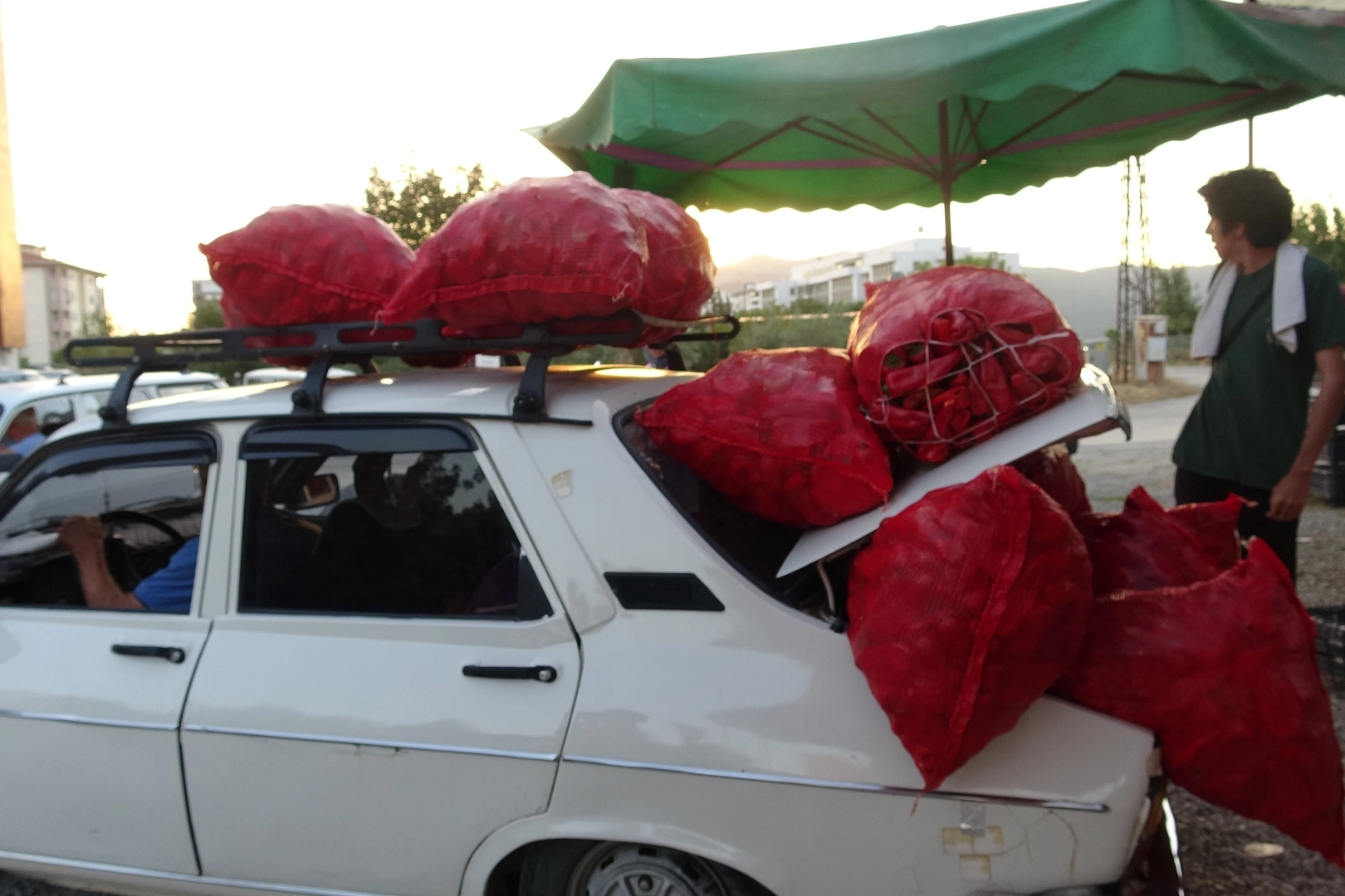 Salçalık biber taşımanın en pratik yöntemi olarak Toros ve eski model otomobilleri tercih eden vatandaşlar, araçların bagajını, tavanını ve koltuklarını çuvallarla doldurdu. Yaklaşık bir tonluk yüküyle yola çıkan araçlar, ilçede ilginç ve renkli manzaralar oluşturdu.