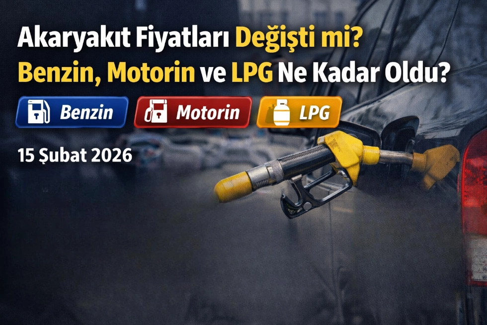 Akaryakıt Fiyatlarında Son Durum (15 Şubat 2026)Brent petrol fiyatları, döviz kuru hareketliliği ve vergi düzenlemeleri akaryakıt fiyatlarını etkilemeye devam ediyor. Sürücülerin yakından takip ettiği 15 Şubat 2026 güncel benzin, motorin ve LPG fiyatları belli oldu. Haftanın son gününde akaryakıt ürünlerinde herhangi bir zam veya indirim uygulanmadı.