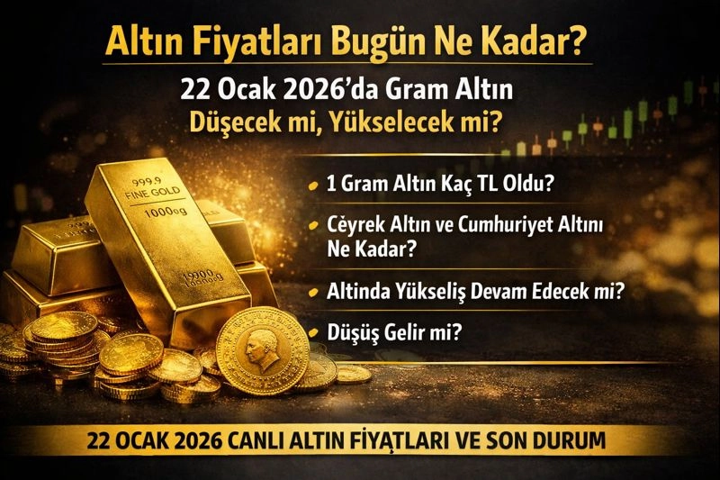 Altın fiyatları 22 Ocak 2026 Perşembe günü yatırımcıların ve vatandaşların yakın takibinde. Son altı gündür yükseliş trendinde olan altın, bugün itibarıyla ilk kez kısa bir soluklanma yaşadı. Küresel piyasalardaki gelişmeler, ABD Merkez Bankası (Fed) politikalarına yönelik beklentiler ve jeopolitik riskler, altın fiyatlarının yönünü belirlemeye devam ediyor. “Altın düşecek mi, yükselecek mi?”, “Bugün gram altın ne kadar?” ve “Çeyrek altın kaç TL oldu?” soruları en çok araştırılan konular arasında yer alıyor.