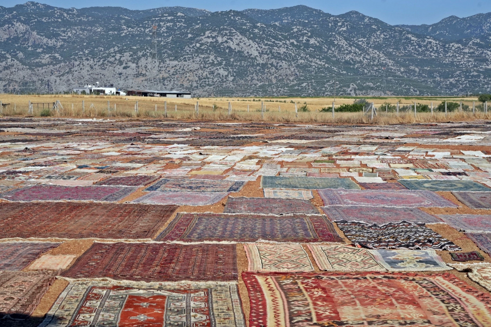 Antalya'da Türkiye'nin dört bir yanından toplanan 20 bini geçkin el dokuması halı ve kilim, restore edilip mikroplardan arındırılmak üzere kışın buğday ekilen tarlalara serilmeye başlandı. Tarlada güneşle pastelleşip görsel şölen oluşturan halıların yüzde 99'u ABD'ye ihraç ediliyor.