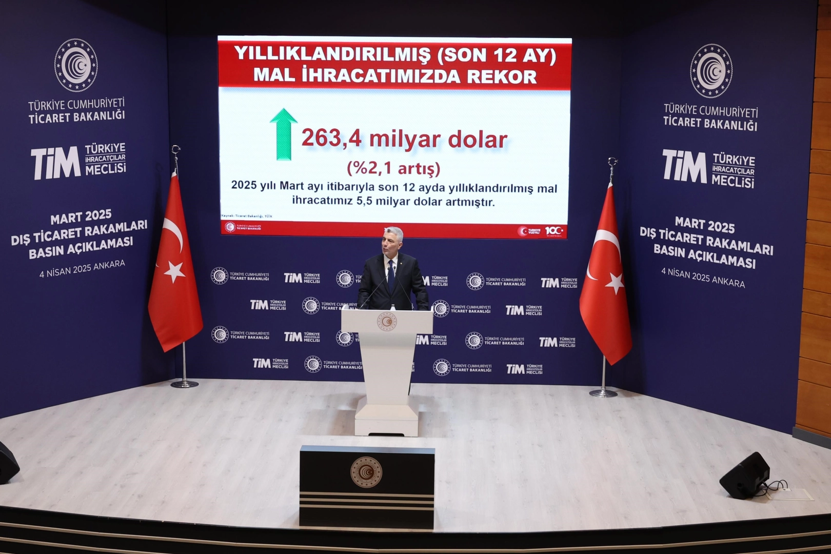 Mart 2025'te elde edilen 23,4 milyar doların aylık bazda Cumhuriyet tarihinin en yüksek 5'inci ihracatı olduğunu dikkati çeken Bolat, takvim etkisi olmasaydı bu rakamın çok daha yüksek seviyelerde olabileceğini belirtti. Bakan Bolat, son 22 ayın 13'ünde aylık ihracat rekoru kırıldığına işaret ederek, "Cumhuriyet tarihimizin, yıllıklandırılmış en yüksek rakamına martta ulaştık. Son 12 ayda, 263,4 milyar dolar mal ihracatı gerçekleştirdik, bu da yıllıkta yüzde 2,1 artış demektir, toplamda 5,5 milyar dolar ilave artış anlamına gelmektedir. 28 Mart'ta 2 milyar 65 milyon dolar günlük ihracatla, Cumhuriyet tarihimizin en yüksek ikinci günlük ihracat rakamını elde ettik" dedi.