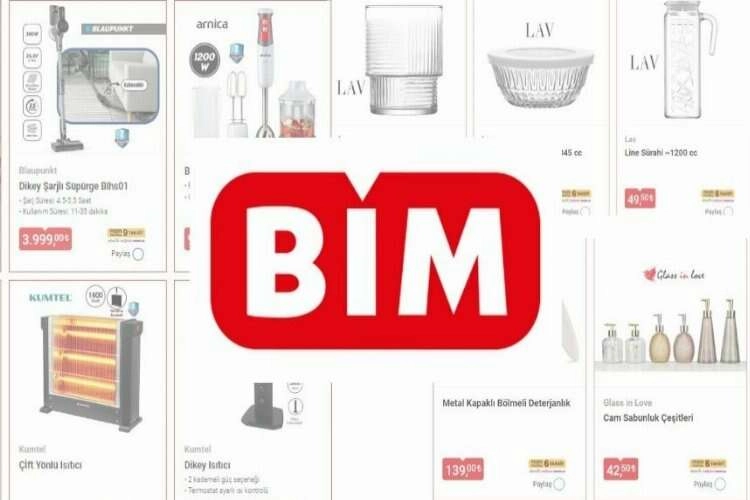 BİM mağazalarında Salı ve Cuma günlerine özel yayımlanan aktüel katalog ürünleri belirtilen günlerde mağazalarda satışa sunuluyor. Yeni haftanın BİM kataloğu belli olurken satışa çıkacak ürünler arasında Elektrikli Bisiklet, 32 İnç Android TV, Casper Cep Telefonu, Blaupunkt Air Fryer, Kumtel Cam Set Üstü Ocak, Dikey Şarjlı Süpürge, Blender Set, Isıtıcı çeşitleri yer alıyor. İşte 14-17 Kasım yeni BİM katalogları...