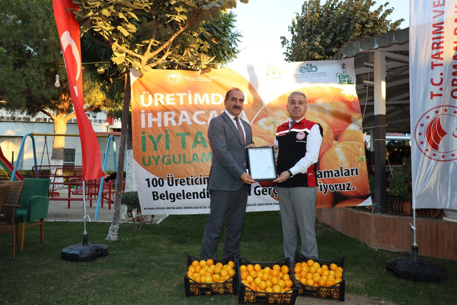 Tarım ve Orman İl Müdürü Mustafa Şahin’den Uçak’a teşekkür sertifika taktim edildiİzmir Tarım ve Orman İl Müdürlüğü ve Ege Yaş Meyve Sebze İhracatçıları Birliği iş birliğinde yürütülen Seferihisar, Menderes ve Selçuk ilçelerinde 100 üreticiyi kapsayan “Üretimden İhracata İyi Tarım Uygulamaları” projesine verdiği destek nedeniyle İzmir İl Tarım ve Orman Müdürü Mustafa Şahin, Ege Yaş Meyve Sebze İhracatçıları Birliği Başkanı Hayrettin Uçak’a teşekkür sertifikası takdim etti.