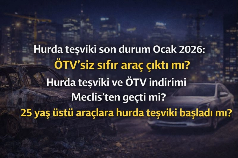 25 YAŞ ÜSTÜ ARAÇLARA HURDA TEŞVİKİ BAŞLADI MI?Trafik güvenliğini tehdit eden ve çevre kirliliğine neden olan yaşlı araçların parktan çekilmesi amacıyla planlanan hurda teşviki de henüz resmen başlamadı. Taslak aşamasındaki düzenlemeye göre; 25 yaş ve üzerindeki ekonomik ömrünü tamamlamış araçlarını hurdaya ayıran vatandaşlara, yerli üretim yeni araç alımlarında ek indirimler veya finansal kolaylıklar sağlanması hedefleniyor. Bu hamlenin hem otomotiv pazarını canlandırması hem de karbon emisyonunu düşürmesi bekleniyor. Gözler, düzenlemenin yasalaşacağı tarih için TBMM gündemine çevrilmiş durumda.