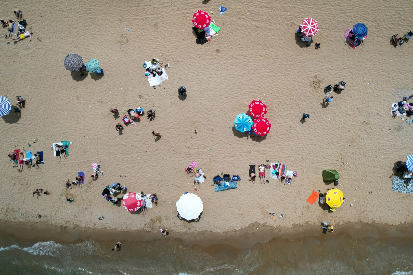Öte yandan sıcaktan bunalan ineklerde serinlemek için çareyi sahile inmekte buldu. İnekler vatandaşların arasında dolaşarak suyla temas etti. Kıyıda duran inekler kumsalın ıslak tarafında serinledi. İneklerin vatandaşlarla birlikteki halleri ilginç görüntüler oluşturdu.
