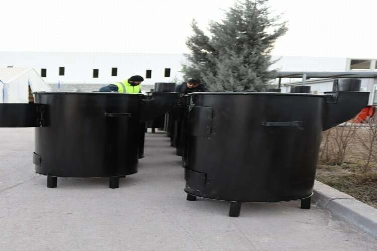 Atölye şartlarında yaklaşık 2 saat süren bir çalışmayla tamamı geri dönüştürülebilir malzemeler kullanılarak üretilen odun sobaları Hatay, Kahramanmaraş ve Adıyaman'da Afet ve Acil Durum Yönetimi Başkanlığı (AFAD) koordinasyonuyla belirlenen afet bölgelerine gönderildi.