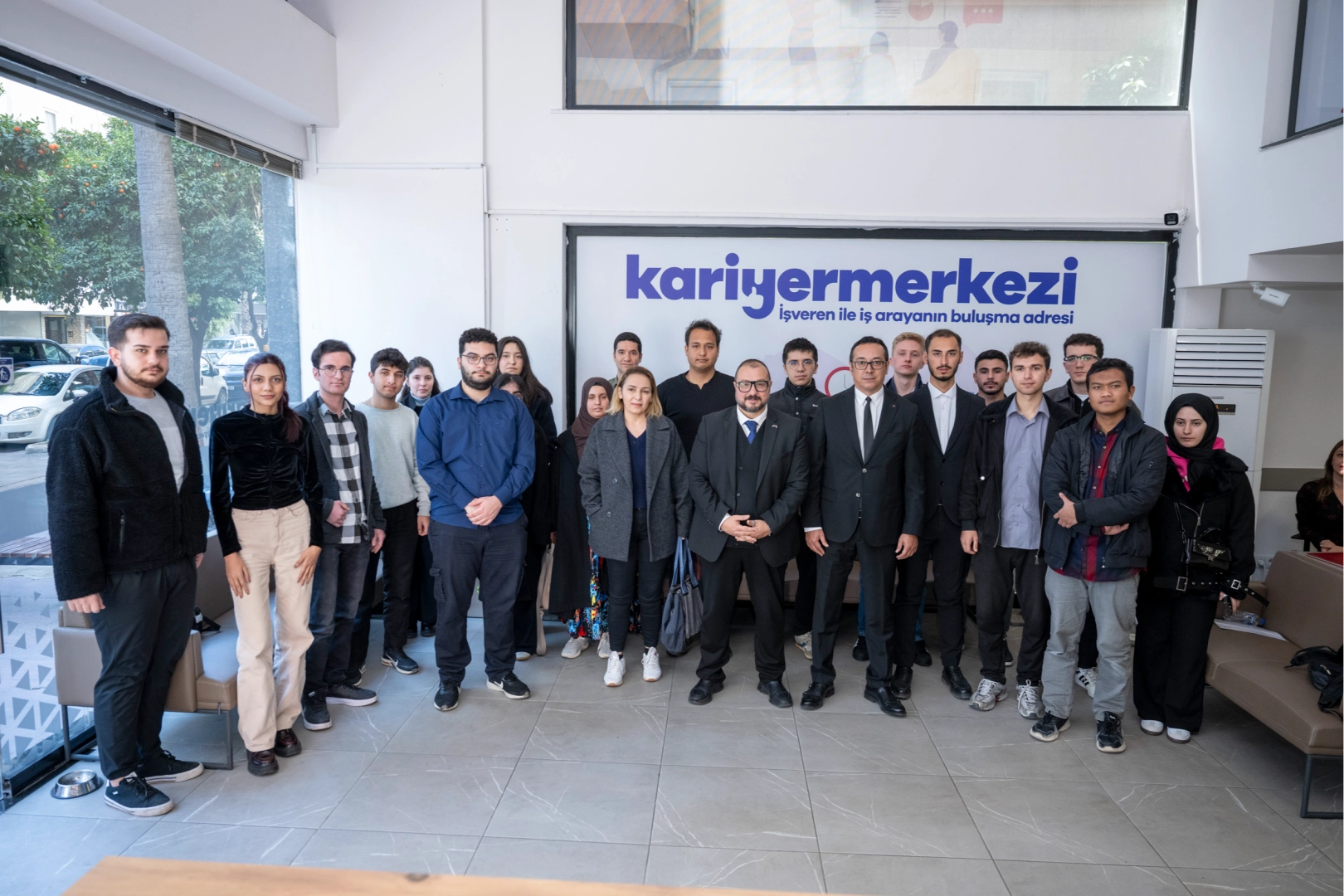 ÖZADA: “AMACIMIZ ÜNİVERSİTE-SANAYİ-KENT İŞ BİRLİĞİNE KATKI SUNMAK”Kariyer Merkezi Müdürü Serkan Özada, 2019 yılından bu yana Kariyer Merkezi’nin iş arayanlar, öğrenciler ve gençlerin yanı sıra işverenler için de danışmanlık hizmeti sunduğunu ifade etti. Kariyer Merkezi’nin temel amacının ‘üniversite-sanayi-kent’ iş birliğine katkı sunmak olduğu kaydeden Özada, “Sadece eğitim mentörlüklerine değil; öğrencilerimizin, özellikle üniversiteli gençlerin istihdama katılımını sağlayacak programlara imza atmaya çalışıyoruz. ‘Kampüsten Sektöre-Genç Yetenek Programı’ adını verdiğimiz bu proje ile üniversite öğrencilerimizin mezun olmadan önce iş dünyasını tanımalarını amaçlıyoruz” dedi. Özellikle üniversite öğrencilerine iş deneyimi kazandırmak istediklerini söyleyen Özada, “Bu program sayesinde öğrenciler zaman yönetimi, çalışma ilkeleri ve vatandaş ilişkileri gibi birçok alanda deneyim sahibi olacaklar. Böylece, bir sonraki iş süreçlerinde çok büyük bir avantaj kazanacaklarını düşünüyoruz” diye konuştu.