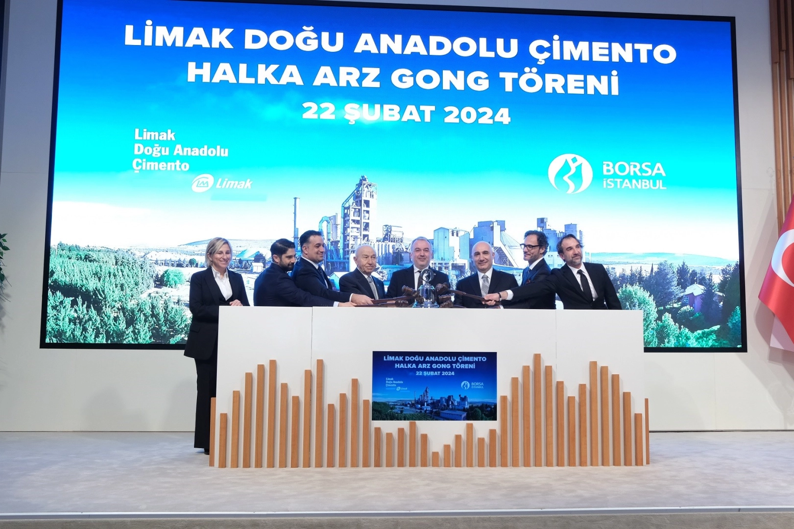 Limak Doğu Anadolu Çimento, Borsa İstanbul'da işlem görmeye başladı. Gong töreni düzenlendi ve Halk Yatırım liderliğinde gerçekleşen halka arz, 4,4 kat talep alarak 2 milyar 526 milyon TL büyüklüğe ulaştı. Limak Doğu Anadolu Çimento'nun hisseleri, Borsa'da 'LMKDC' koduyla Yıldız Pazar'da işlem görüyor.