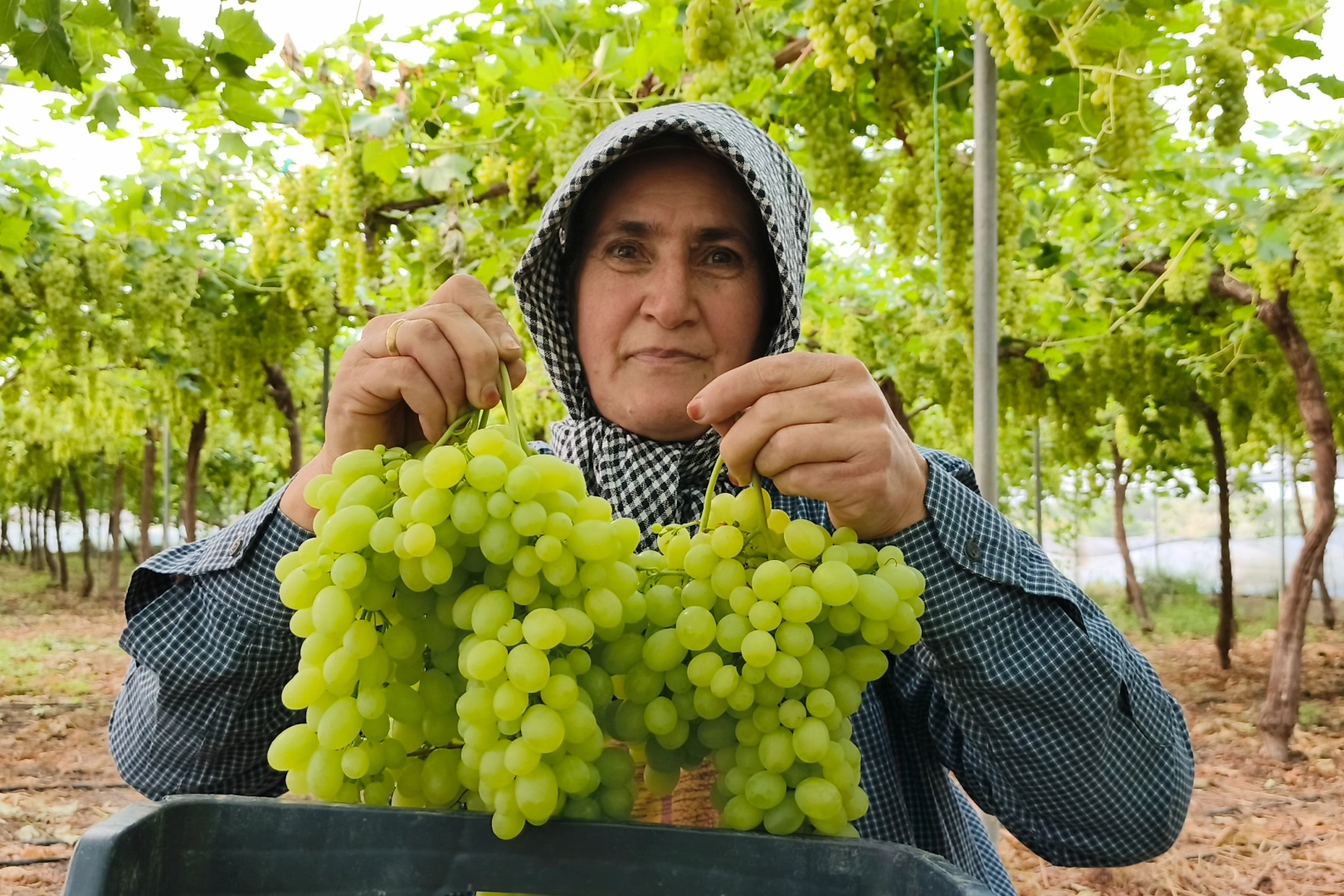 6 dönümlük serasında üretim yaptığını belirten Sak, yaklaşık 17 ton rekolte beklediklerini ifade ederek, "Örtü altı üzüm yetiştiriciliği yapıyorum. Bu yıl 6 dönümden 17 ton ürün bekliyoruz. Türkiye'de ilk hasat burada yapılıyor. Ürünlerimiz iç piyasanın yanı sıra Ortadoğu ve Avrupa ülkelerine gönderiliyor. Fiyatlardan memnunuz" diye konuştu.