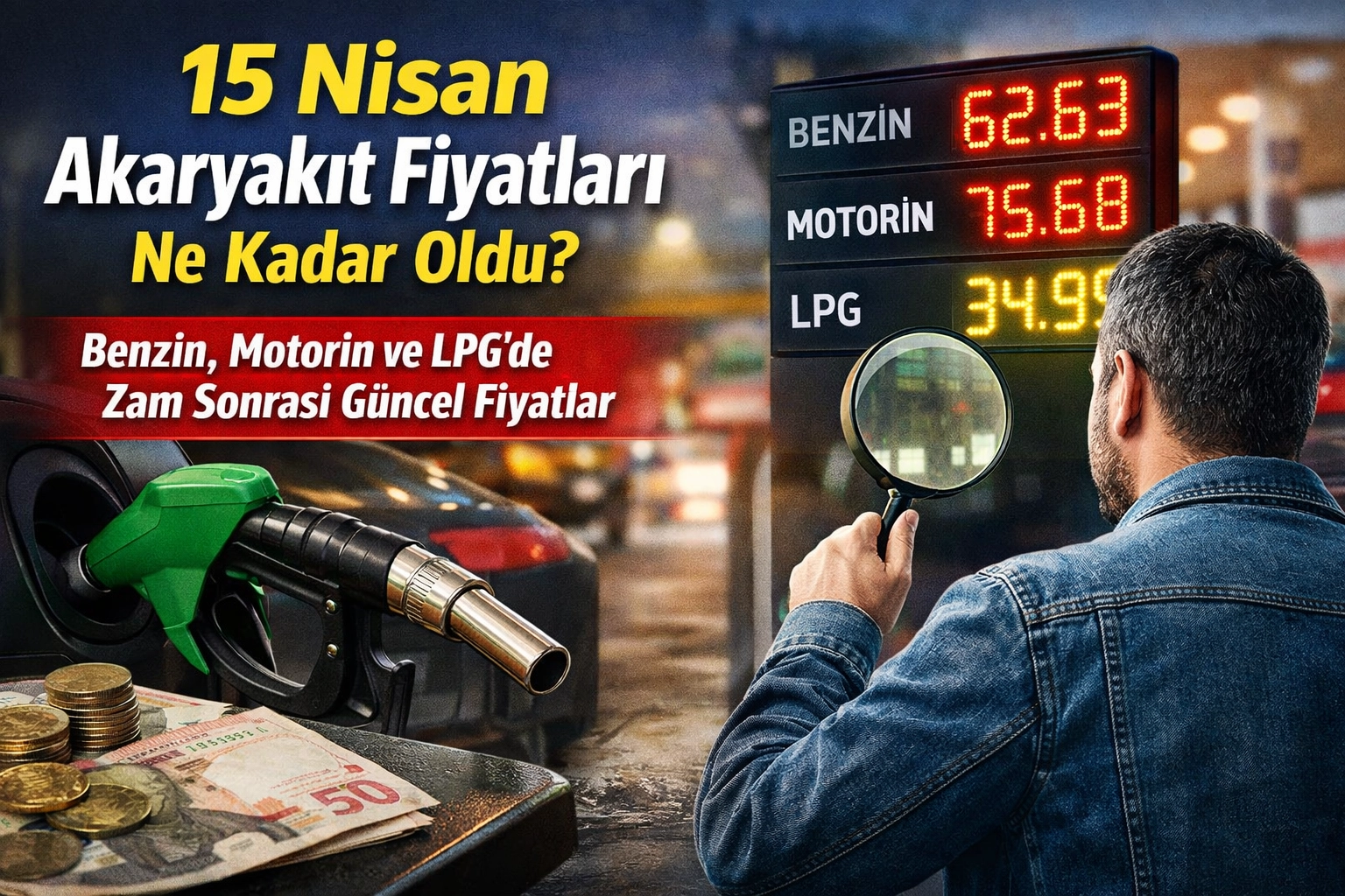 Akaryakıt fiyatları 15 Nisan itibarıyla yeniden zamlandı. Motorine yapılan 3,33 TL’lik artış pompaya yansırken, benzin ve LPG fiyatları da güncellendi. İstanbul, Ankara ve İzmir’de sürücüler güncel litre fiyatlarını araştırıyor. İşte şehir şehir son akaryakıt fiyatları…