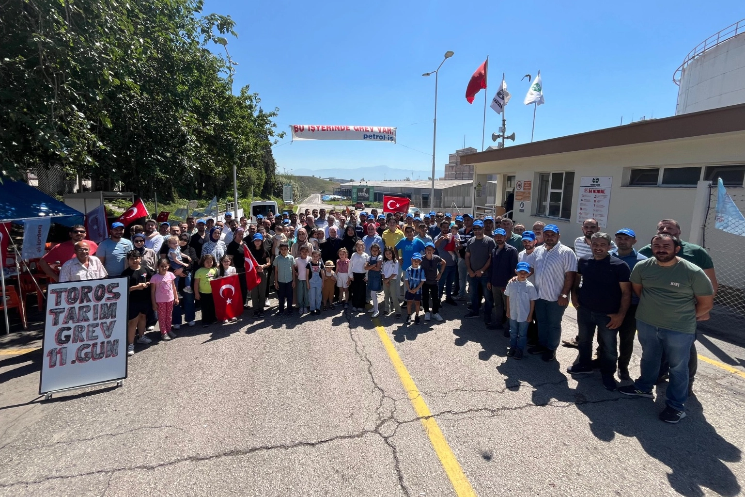 Adana’nın Ceyhan ilçesinde faaliyet gösteren Toros Tarım Sanayi A.Ş’de toplu iş sözleşmesi görüşmelerinin anlaşmazlıkla sonuçlanması üzerine başlayan grev 11. gününe girdi. Türk-İş’e bağlı Petrol-İş Sendikası öncülüğünde devam eden direnişte, Petrol-İş Genel Başkanı Süleyman Akyüz ve Genel Mali Sekreter Mehmet Kaya işçilere destek vermek üzere grev alanını ziyaret etti. İşçilerin yoğun ilgisiyle karşılanan Akyüz, ekonomik koşulların giderek ağırlaştığını, işçilerin artık sadece geçim mücadelesi verdiğini vurguladı. “Bu sözleşme işçilerin nefes almasını sağlamalı” diyen Akyüz, bayram öncesi çözüm çağrısı yaparak, “Çifte bayram yaşamak istiyoruz. Süreci ertelemek yerine hemen masaya oturulmalı” dedi.