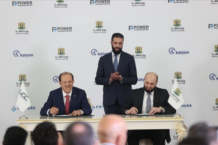 Suriye Cumhurbaşkanı Ahmed Şara'nın huzurunda, Suriye Enerji Bakanlığı ile Türkiye'den Kalyon Holding ve Cengiz Holding, Katar'dan UCC ve ABD'den Power International şirketleri arasında 7 milyar dolarlık stratejik işbirliği anlaşması imzalandı.
