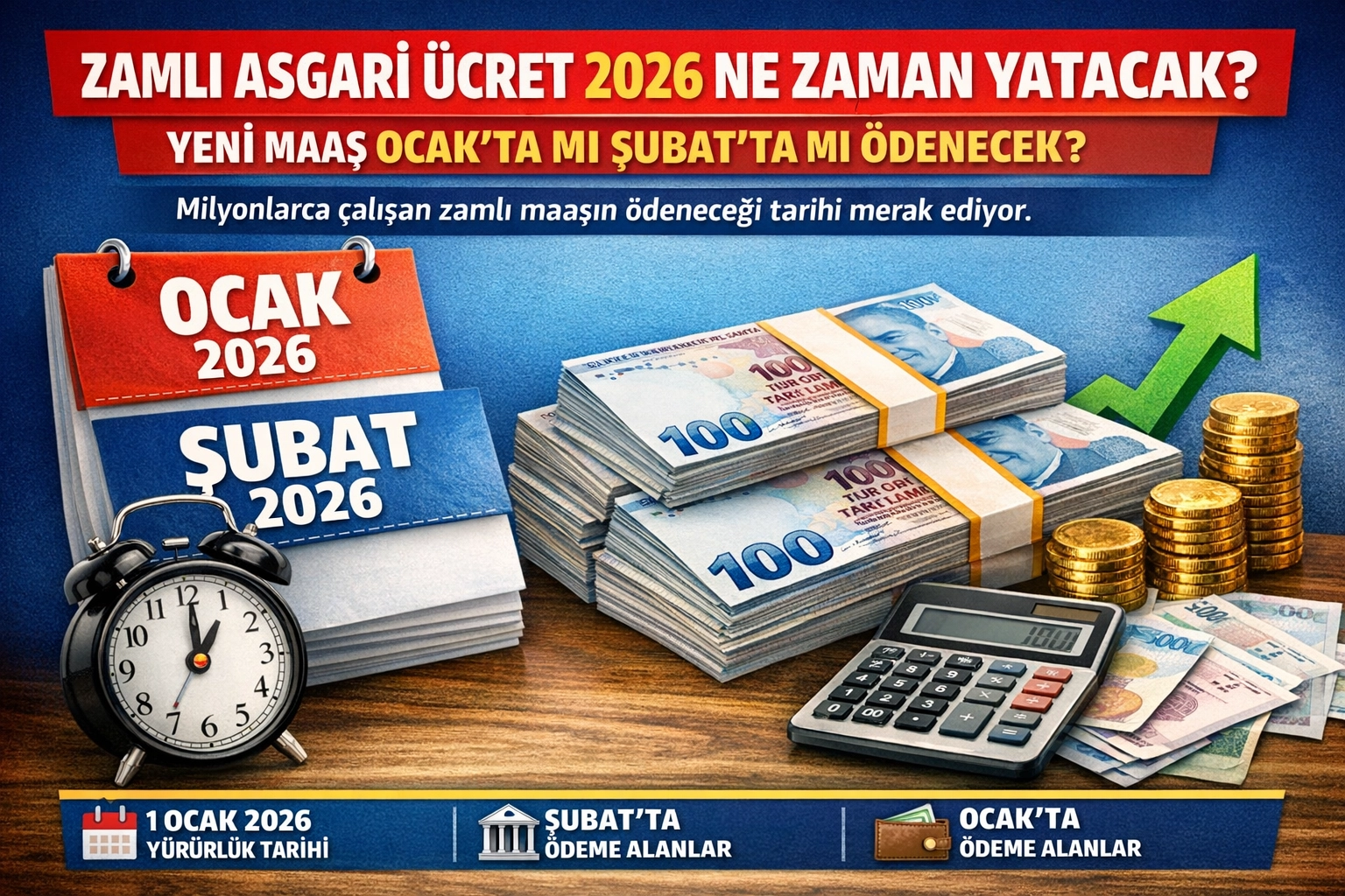 ZAMLI ASGARİ ÜCRET NE ZAMAN YATACAK?2026 yılı zamlı asgari ücreti, yasal düzenleme gereği 1 Ocak 2026 tarihinden itibaren geçerli olacak. Ancak Türkiye’de yaygın olarak uygulanan bordro sistemi nedeniyle, çalışanların büyük bölümü zamlı maaşı Şubat 2026’nın ilk haftasında alabilecek.