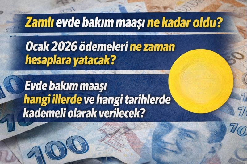 Ocak 2026 itibarıyla evde bakım maaşlarına yüzde 18,60 zam geldi. Memur maaş katsayısındaki artışla güncellenen evde bakım ödemeleri, 15 Ocak Perşembe günü itibarıyla kademeli olarak illere yatırılmaya başlıyor.