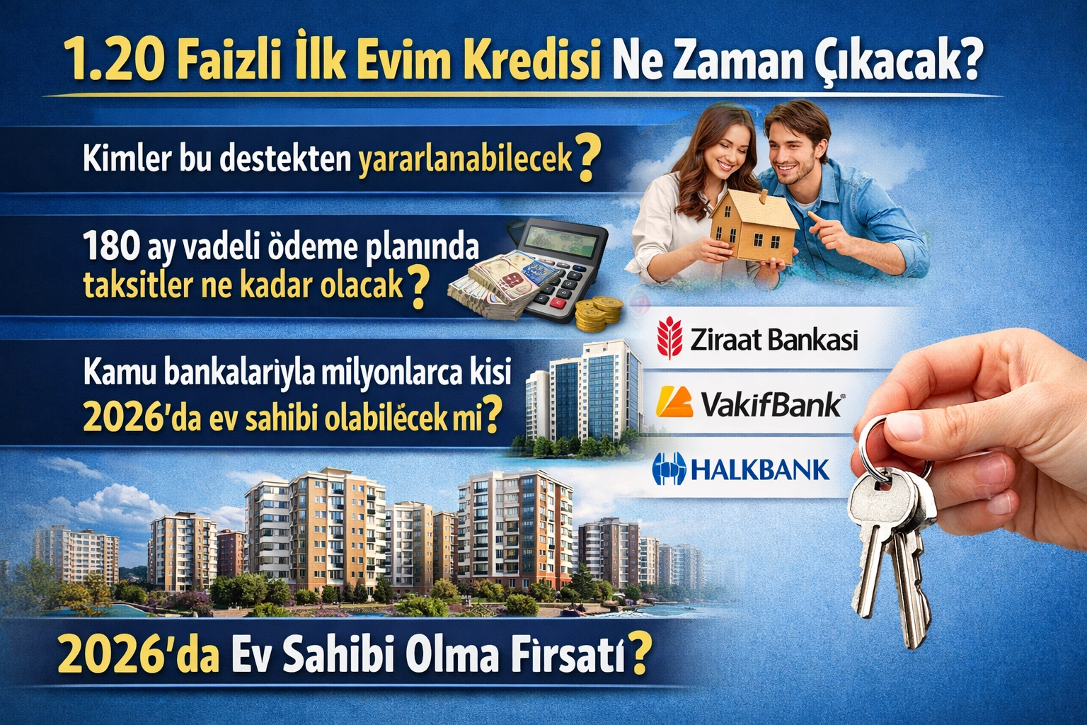 SON DURUM NE?2026’nın ilk çeyreğinde en çok araştırılan konular arasında yer alan 1.20 faizli konut kredisi için teknik çalışmalar hız kazandı. Hazine ve Maliye Bakanlığı ile BDDK’nın süreci tamamlamasının ardından kampanya takvimi ve başvuru şartları netleşecek.