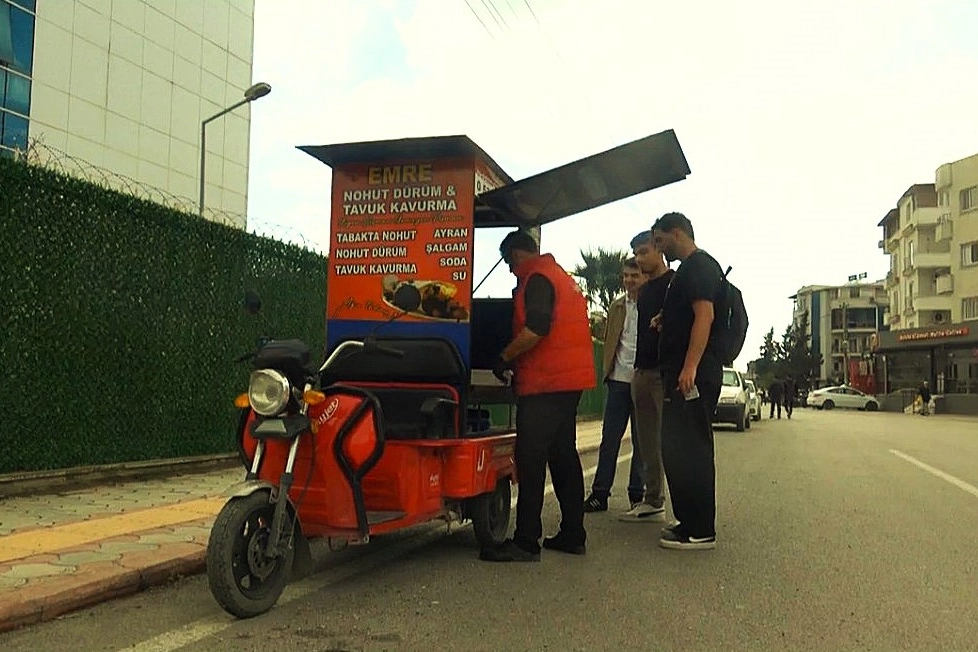 Arsuz ilçesinde sokak sokak dolaşarak 1 metrekarelik ekmek teknesinde nohut dürüm ve tavuk kavurma satan Yasin Mansuroğlu, motosikletiyle lezzeti vatandaşların ayağına götürüyor. Tavuk dönerden sıkılan vatandaşlara nohut dürüm lezzetini tattıran Mansuroğlu, çalışma azmiyle de takdir topluyor. Dönerciler şehrinde Yasin Mansuroğlu geçimini sağladığı nohut dürümü 90 TL'den, tavuk kavurmayı ise 100 TL'den satışa sunuyor.