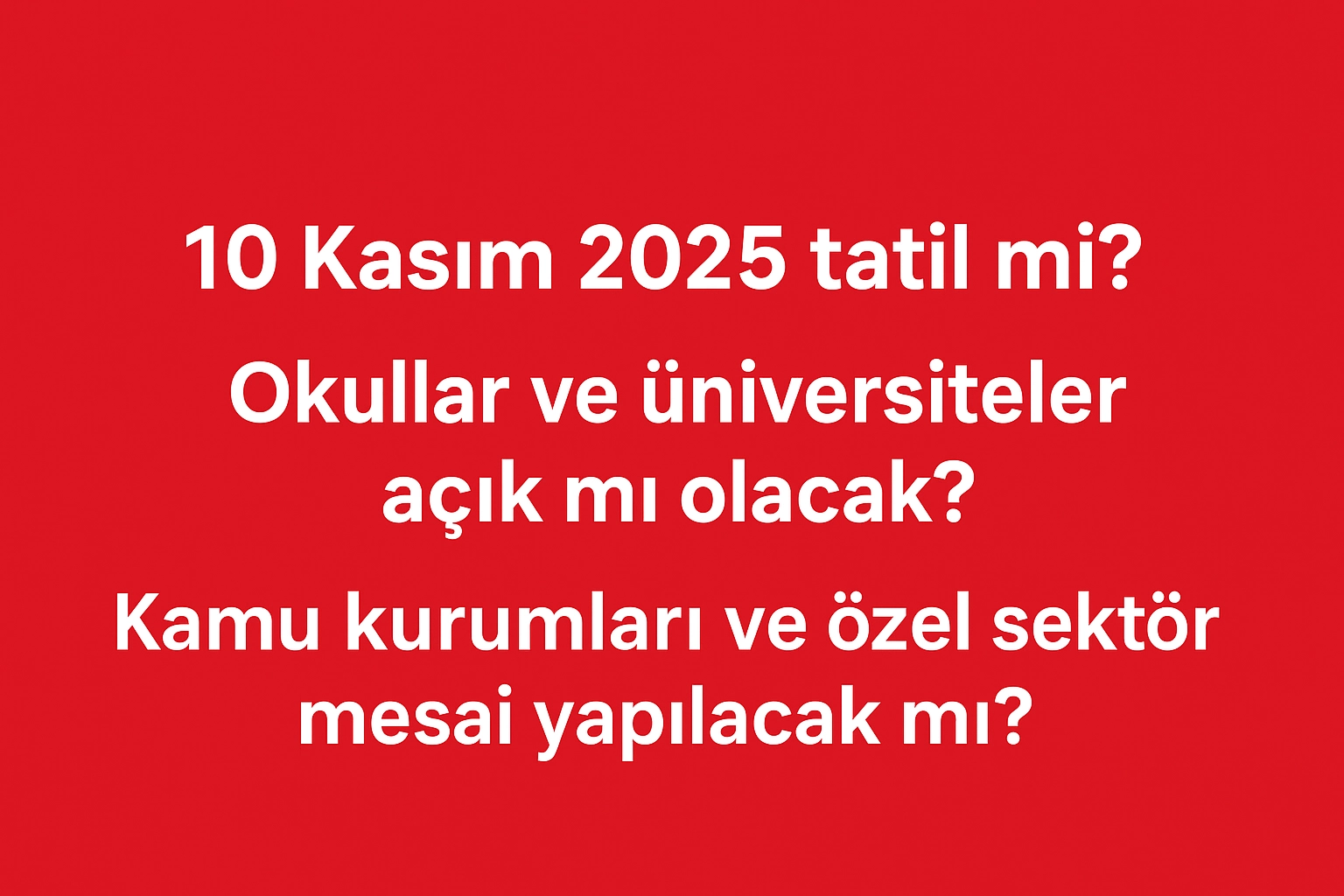10 Kasım’da okullar ve üniversiteler açık mı?İlk ve orta dereceli okullar: Kasım ara tatili nedeniyle tatil. Üniversiteler: Ara tatil uygulanmadığından eğitim devam ediyor.