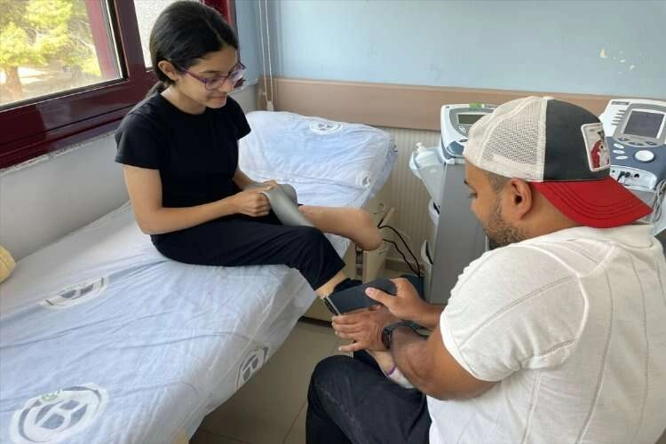 ÇOİM aracılığıyla yapılan tetkik ve tedavilerin ardından yaklaşık 1 ay önce protez bacağına kavuşan ve koltuk değneğiyle yürümeye başlayan küçük kız, merkezde haftanın her günü en az bir saat fizik tedavi görüyor.