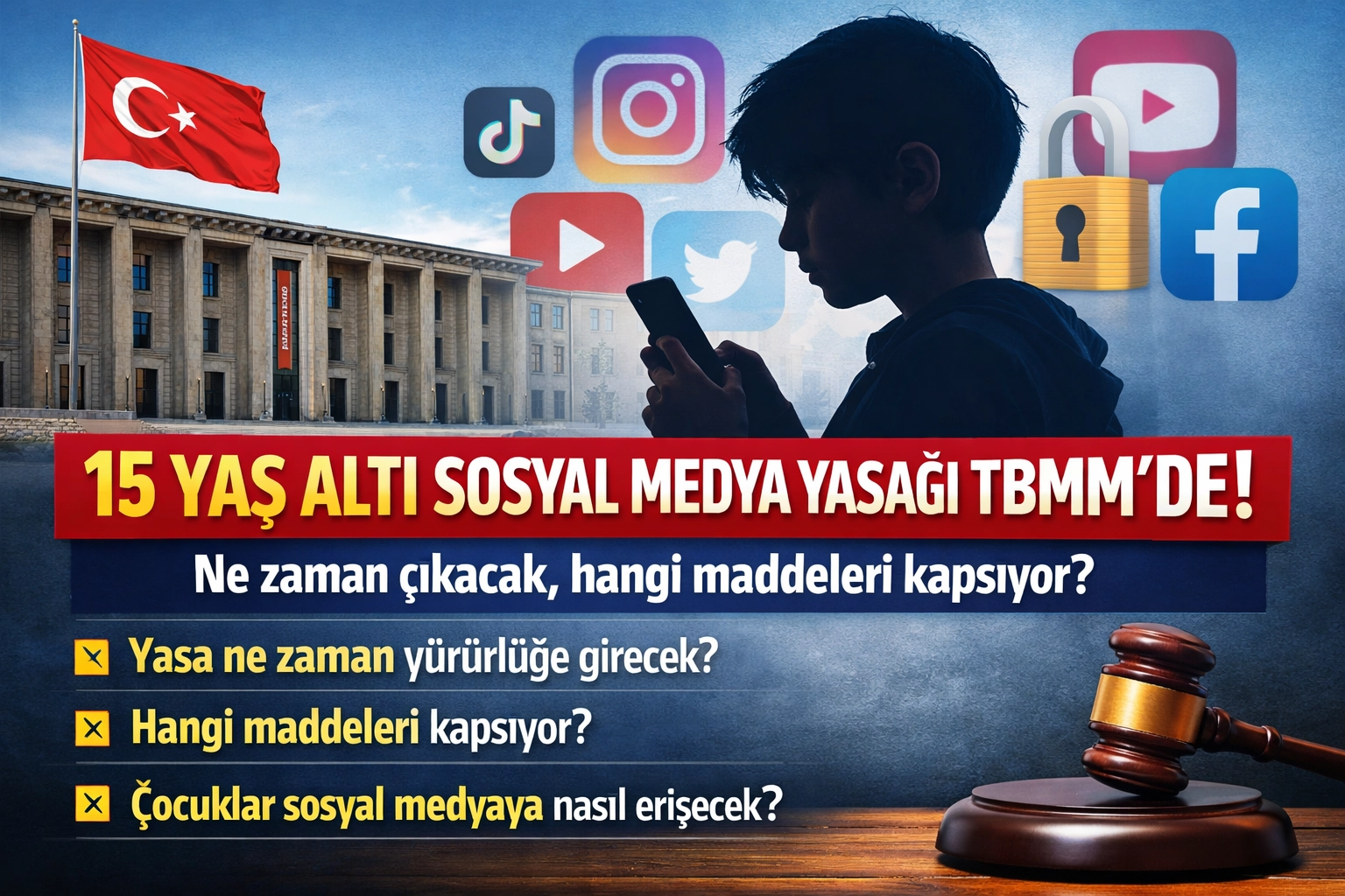 15 YAŞ ALTI SOSYAL MEDYA YASAĞI TBMM’YE SUNULDUAK Parti, 15 yaş altı çocukların sosyal medya kullanımını sınırlayan yasa teklifini TBMM Başkanlığı’na sundu. Sosyal Hizmetler Kanunu ve Bazı Kanunlarda Değişiklik Yapılması Hakkında Kanun Teklifi ile, Anayasa Mahkemesi tarafından iptal edilen “içeriğin yayından çıkarılması ve erişimin engellenmesi” hükmü yeniden düzenleniyor.