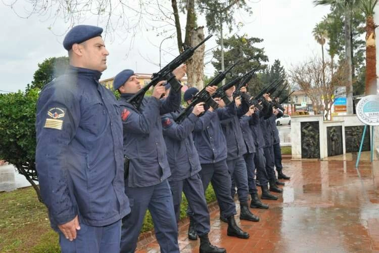 Mersin Şehir Mezarlığı'ndaki şehitlikte gerçekleştirilen törende, Vali Ali Hamza Pehlivan, Deniz Kuvvetleri Akdeniz Bölge ve Garnizon Komutanı Tuğamiral Fuat Gedik, Büyükşehir Belediye Başkanı Vahap Seçer ve Türkiye Harp Malulü Gaziler Şehit, Dul ve Yetimleri Derneği Mersin Şube Başkanı Fatih Tuncer, anıta çelenk bıraktı.