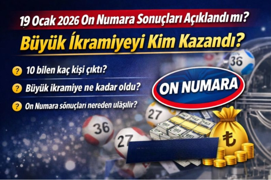 19 OCAK 2026 ON NUMARA ÇEKİLİŞ SONUÇLARICanlı On Numara çekilişi, 19 Ocak 2026 Pazartesi günü saat 20.00’de noter huzurunda yapıldı. En çok kazandıran şans oyunlarından biri olan On Numara’da bu akşamki çekilişte büyük ikramiye 1 talihliye çıktı. Ayrıca 9 bilenler, 8 bilenler, 7 bilenler ve 6 bilenler de diğer ikramiyeleri kazanan şanslılar arasında yer aldı.