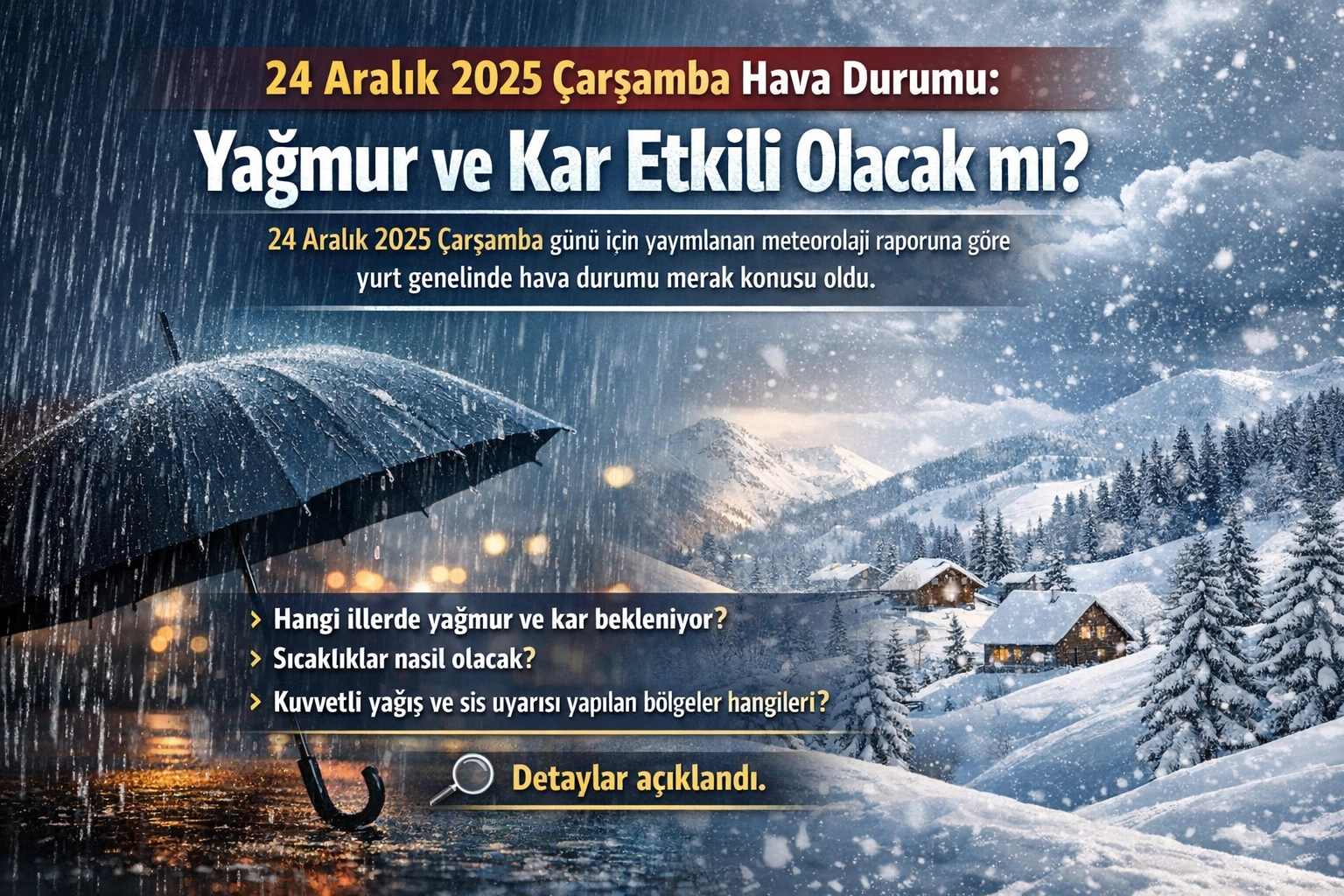 Meteoroloji Genel Müdürlüğü’nün son tahminlerine göre Türkiye genelinde parçalı ve çok bulutlu bir hava bekleniyor. Marmara’nın batısı, Kıyı Ege, Batı Akdeniz, Orta ve Doğu Karadeniz kıyıları ile birçok ilde yağmur ve sağanak etkili olacak. Doğu Karadeniz’in iç kesimleri ile Sivas ve Yozgat çevrelerinde ise karla karışık yağmur ve yer yer kar yağışı görülecek.Vatandaşlar “Bugün hava nasıl olacak?”, “Hangi illerde yağmur var?”, “Kar yağışı bekleniyor mu?” sorularına yanıt ararken, Meteoroloji’den kuvvetli yağış uyarısı da geldi.