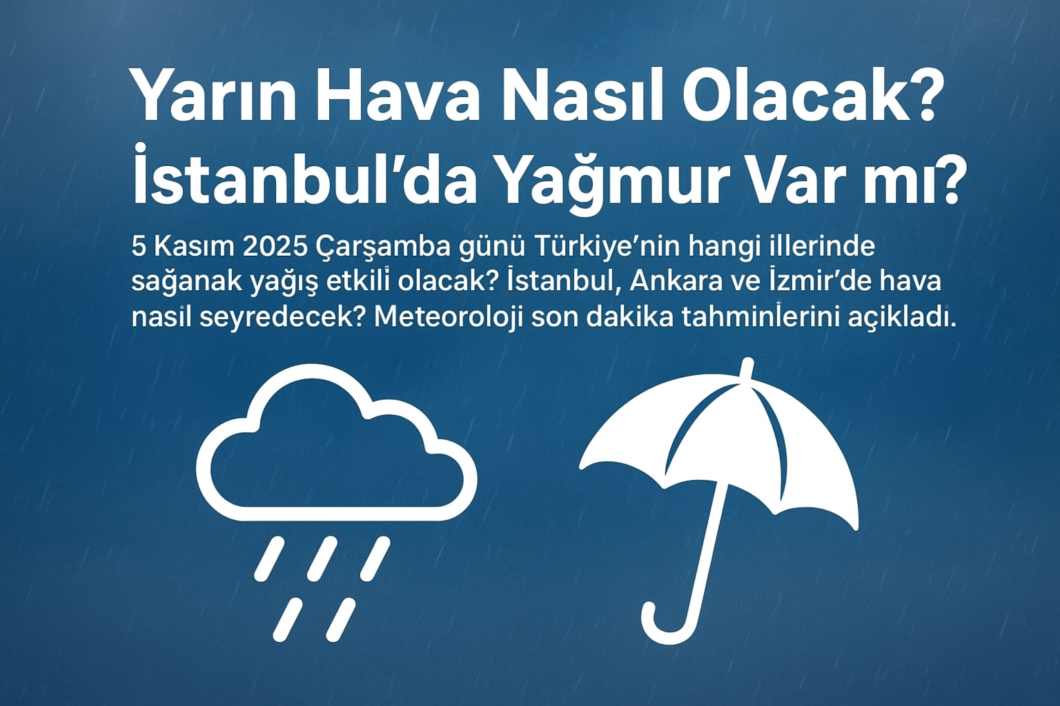 Meteoroloji Genel Müdürlüğü, 5 Kasım 2025 Çarşamba günü için il il hava durumu tahminlerini açıkladı. İstanbul başta olmak üzere Düzce, Amasya ve Sivas çevrelerinde sağanak ve gök gürültülü sağanak yağışlar etkili olacak. İşte Türkiye’nin bölgeler bazında ayrıntılı hava durumu raporu...