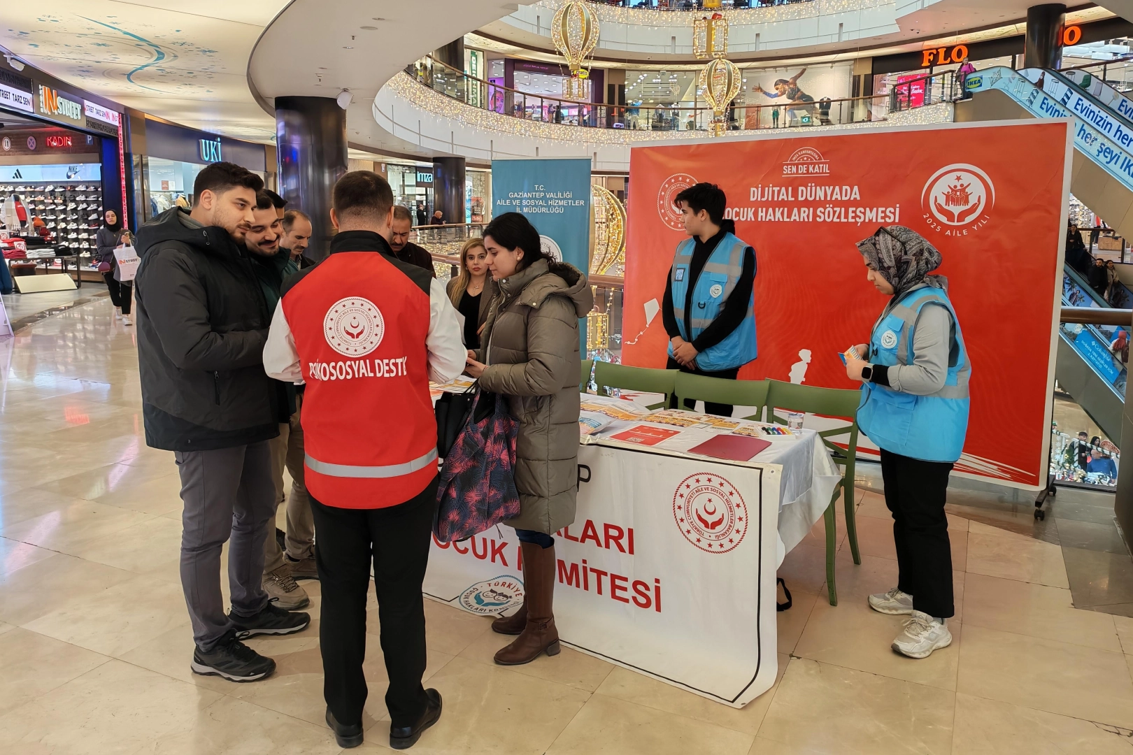 Bu kapsamda, çocukları dijital mecraların olumsuz etkilerinden korumak ve olası risklere karşı iş birliğini güçlendirmek amacıyla, il müdürlükleri aracılığıyla şehir merkezlerinde stantlar kurularak “Dijital Dünyada Çocuk Hakları Sözleşmesi” vatandaşların imzasına sunuldu. Dijital dünyanın bir tehdit değil, doğru kurallar, güçlü denetimler ve bilinçli ailelerle güvenli bir fırsat olduğunun vurgulandığı stantlarda, çocukların dijital dünyada kaybolmadan, haklarını bilen ve kendini güvende hisseden bireyler olarak güçlenmesi gerektiği mesajı veriliyor.