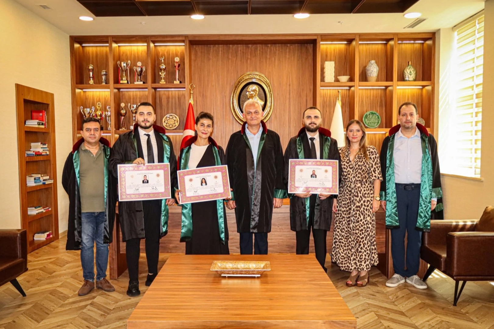 Adana Barosu’nda stajlarını başarıyla tamamlayan Yusuf Kurman, Ümran Bozdoğan ve Ayhan Keriöz için ruhsat töreni düzenlendi. Başkanlık makamında gerçekleştirilen törene Baro Başkan Yardımcısı Av. Hüseyin Saygılı, Genel Sekreter Av. Hasan Soylu, Yönetim Kurulu Üyesi Av. Barış Soğukpınar, avukatlar, aileler ve davetliler katıldı.