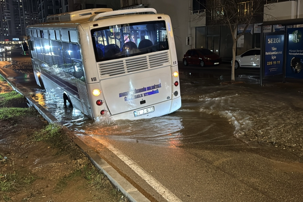 Adana'da özel halk otobüsü, su borusu patlaması sonucu oluşan çukura düştü. Veli Bala'nın kullandığı 01 J 0153 özel halk otobüsü, Çukurova ilçesi Fazlı Meto Bulvarı'nda suyla kaplı yolda hareket halindeyken arka tekeri gevşeyen zeminin üzerine geldiği sırada yol çöktü. Otobüsün arka tekeri oluşan yaklaşık 1 metrelik çukura düştü. Olayın haber verilmesi üzerine Adana Su ve Kanalizasyon İdaresi ekipleri hattaki suyu kesti. Çevrede önlem alan ekipler yolu trafiğe kapattı. Otobüs şoförü Bala, gazetecilere, hareket ettikleri sırada yolun suyla kaplı olduğunu, zeminin görünmediğini söyledi.