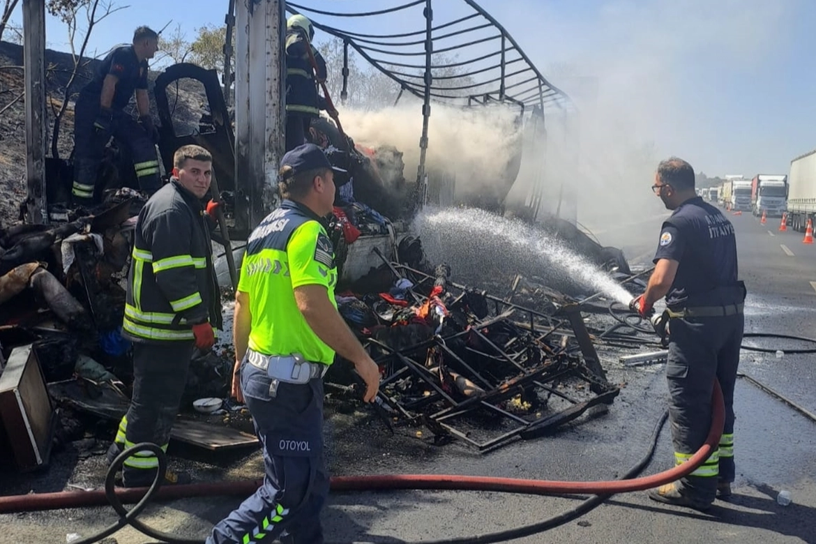 Adana’da Tarsus-Adana-Gaziantep (TAG) Otoyolu üzerinde seyir halindeyken tekstil ürünleri yüklü bir tırın dorsesinde yangın çıktı. İhbar üzerine olay yerine sevk edilen itfaiye ekibinin müdahalesiyle yangın söndürüldü. Yangın nedeniyle araç kullanılamaz hale geldi.