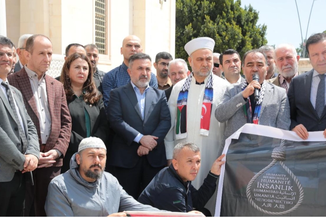 Adana’da Filistin’e Destek Platformu üyeleri, İsrail’in Filistinli esirlere yönelik “idam yasası” ve Gazze’deki saldırıları protesto etti. Seyhan ilçesindeki Sabancı Merkez Camisi avlusunda cuma namazı sonrası bir araya gelen grup, İsrail’e tepki gösterirken basın açıklamasına AK Parti Adana İl Başkanı Tamer Dağlı da destek verdi.