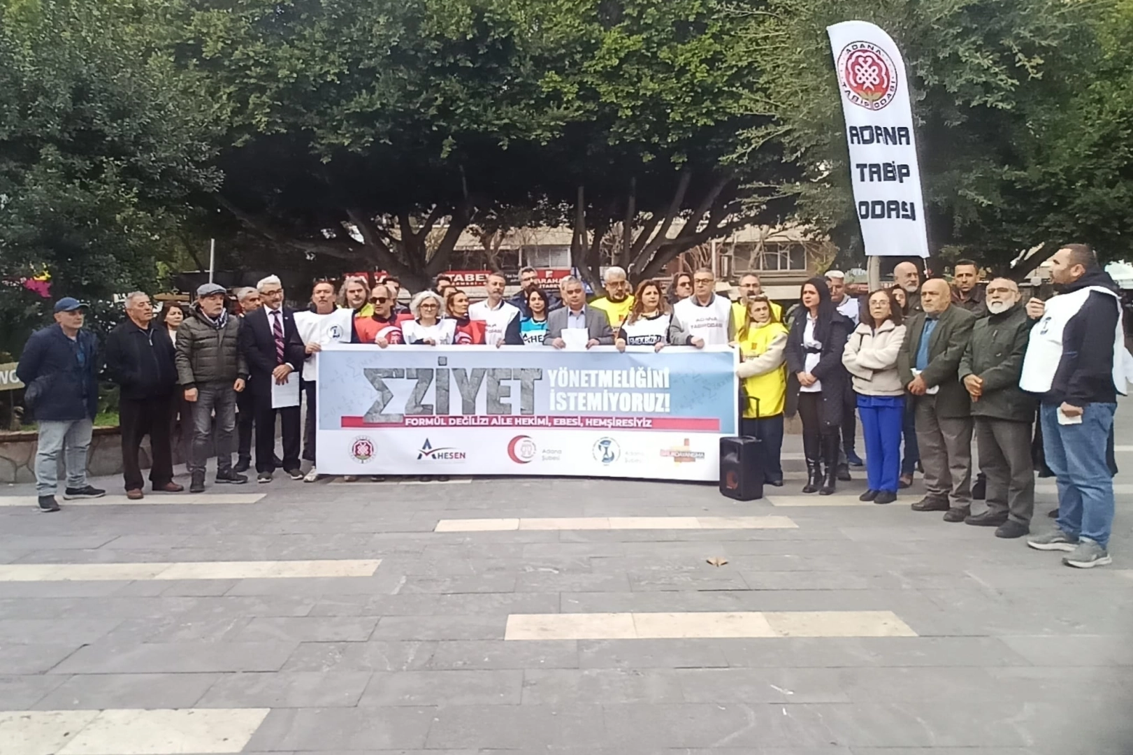 Adana Tabip Odası, Sağlık ve Sosyal Hizmet Emekçileri Sendikası Adana Şubesi, Genel Sağlık-İş Adana Şubesi, Birlik ve Dayanışma Sendikası ile Aile Hekimliği Çalışanları Sendikası, İnönü Parkı’nda bir araya gelerek Aile Sağlığı Merkezleri (ASM)’lerde görev yapan sağlık çalışanlarının taleplerini kamuoyuna duyurdu. Basın açıklamasını yapan Adana Tabip Odası Başkanı Dr. Özden Polatöz, “Nitelikli ve bilimsel sağlık hizmeti, güçlü birinci basamak sağlık hizmetleri talep ediyoruz. Sağlık politikalarının toplum yararı gözetilerek yeniden düzenlenmeli” dedi.