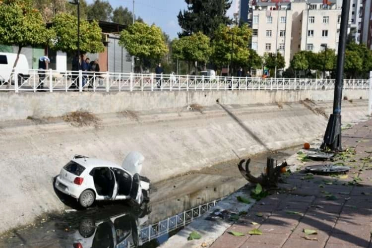 Pınar H. idaresindeki 01 DHJ 27 plakalı otomobil, Mavi Bulvar'da sürücüsünün direksiyon hakimiyetini kaybetmesi nedeniyle DSİ'ye ait boş sulama kanalına devrildi.