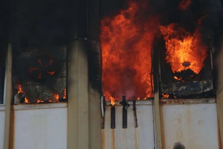 Söndürme işlemi sırasında meydana gelen patlama nedeniyle ekipler, vatandaşları bölgeden uzaklaştırdı.