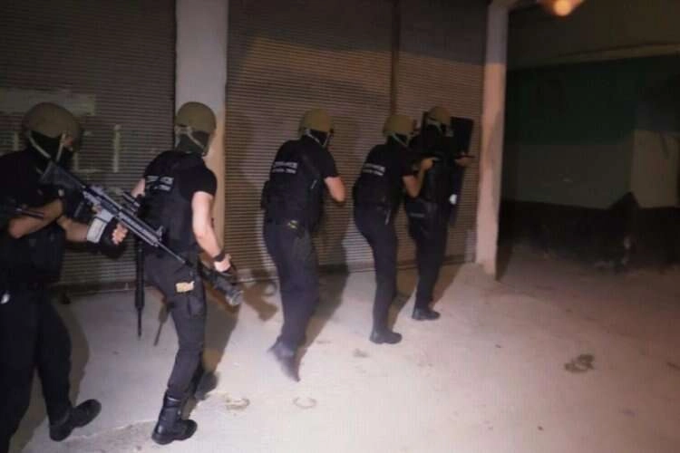 Adana'da özel harekat polislerinin de katıldığı eş zamanlı operasyonda kapıları koçbaşıyla kırarak evlere giren ekipler, arama yaptı.