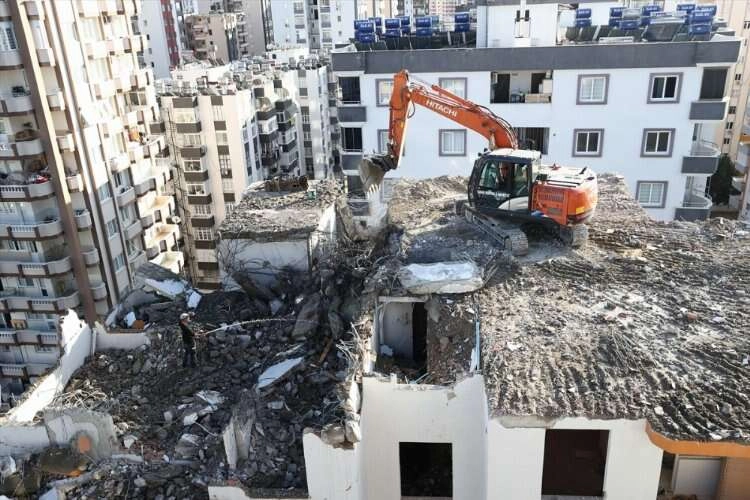 Kentte, 6 Şubat'taki depremlerin ardından yıkım kararı verilen yapılardaki çalışmalar devam ediyor.