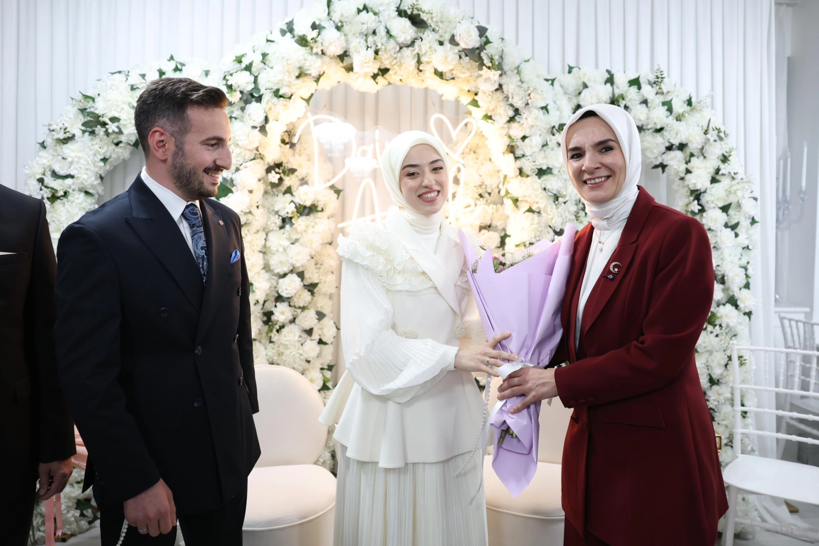 Mehmet Fatih Tuğ da "Geçtiğimiz cuma günü namazdan sonra Bakanımıza mesaj atıp bu özel günümüze davet etmek istedim. Bizi kırmadılar, çok güzel dönüş yaptılar. Bugün bizleri çok mutlu ettiniz. Cumhurbaşkanımızın iradesiyle, Sayın Bakanımızın gayretleriyle bu sene Aile yılı ilan edilmesiyle çok güzel projeler, çalışmalar var. 'Nasıl olacak, nasıl evleneceğiz' diye düşünen birçok genç vardı ama bugün öyle düşünmüyorlar, yalnız olmadığımızı hissedebiliyoruz” şeklinde konuştu.