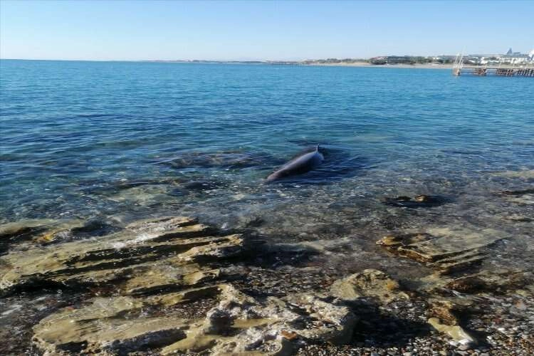 Okurcalar Mahallesi'nde sahile bir yunusun vurduğunu fark edenler, durumu 112 Acil Çağrı Merkezine bildirdi.