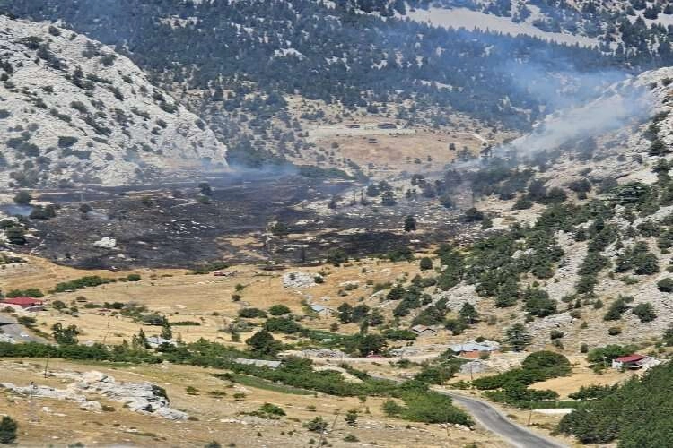 Kaplanhanı yaylasında yerleşim yerine yakın bölgedeki makilik alanda yangın çıktı.