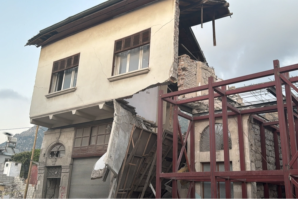 6 Şubat 2023 depremlerinde ağır hasar alan ve Kültür ve Turizm Bakanlığı tarafından korumaya alınan Antakya'daki 2 katlı bina kısmen çöktü. AFAD, itfaiye, polis ve sağlık ekipleri olay yerinde incelemelerde bulundu, olumsuz bir durum tespit edilmedi.