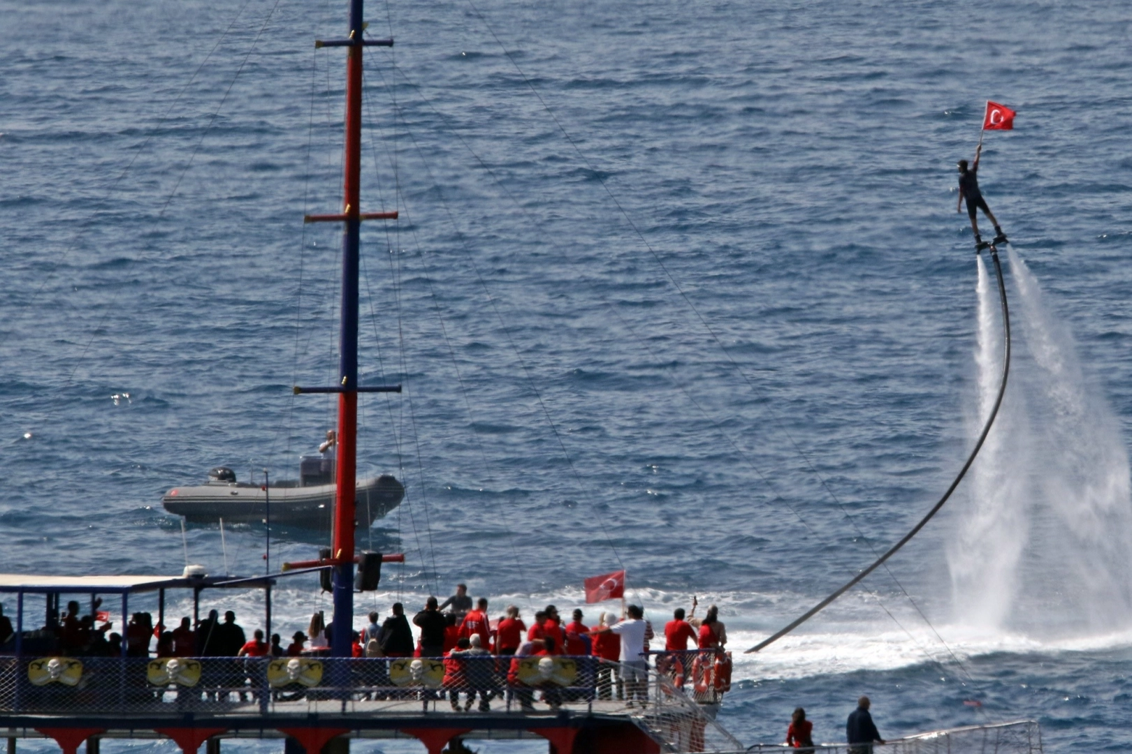 Flyboard ve su gösterileri nefes kestiKorteje eşlik eden flyboard gösterileri ve jet ski şovları, sahilde toplanan vatandaşlara görsel bir şölen sundu. Özellikle çocuklar, su üzerinde yapılan akrobatik hareketleri büyük bir heyecanla izledi. Gösteri öncesinde ise Türkiye Açık Su Şampiyonası 14 yaş üstü milli takım seçme yarışları gerçekleştirildi.