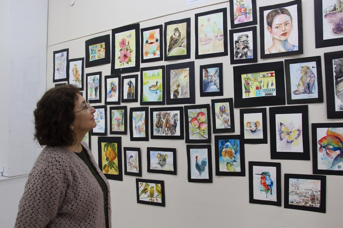 Ayşe Özmak Mercan'ın küratörlüğünü üstlendiği sergide karakalem, sulu boya, akrilik, yağlı boya, dekoratif ve doku çalışmalarından oluşan yaklaşık 160 eser yer aldı. Mercan, bu yıl "İyileştiren Kütüphane" temasıyla 62'ncisi kutlanan hafta kapsamında, 34 kursiyerin çalışmalarından oluşan sergiyi açtıklarını söyledi.