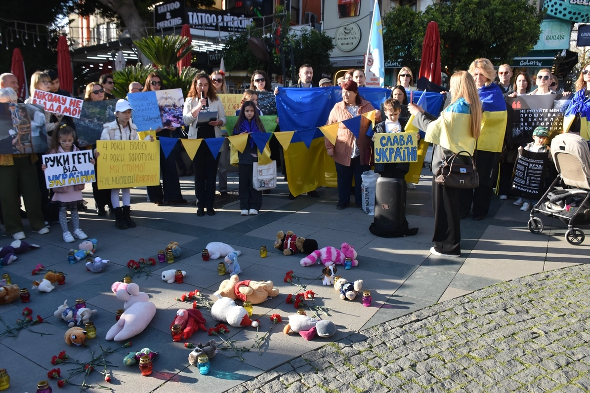 Ukrayna-Rusya savaşının 4. yıl dönümünde Antalya’da yaşayan Ukraynalı vatandaşlar anma programı düzenledi. Saat Kulesi önünde gerçekleştirilen buluşmada Ukrayna Başkonsolos Vekili Yuliia Kuchma basın açıklaması yaptı.