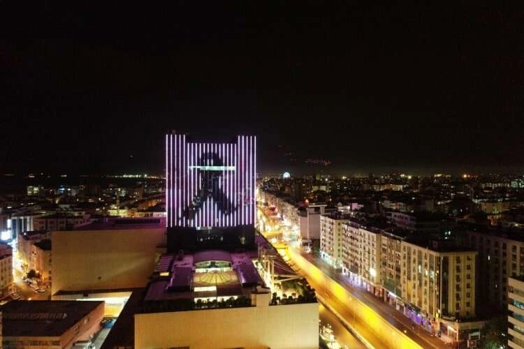Antalya'da ise kent merkezindeki MarkAntalya AVM'nin dış cephelerine ışıklandırma sistemiyle siyah kurdele yansıtıldı.