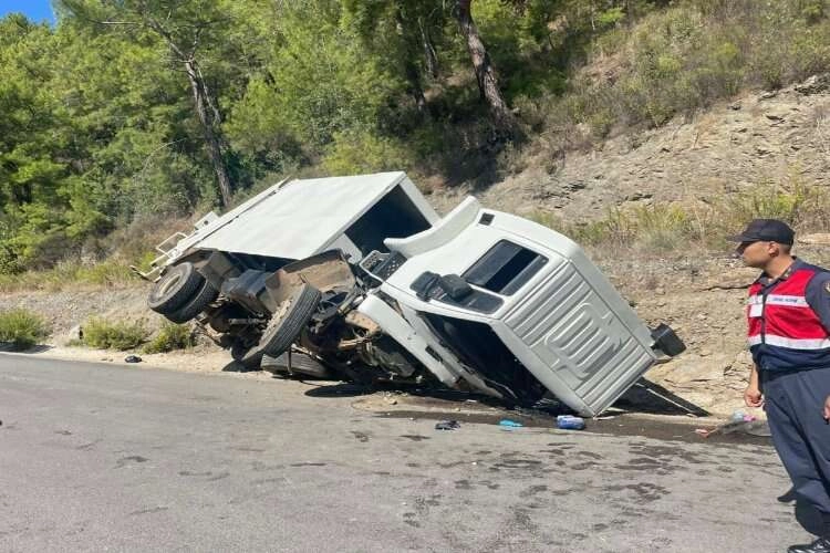 Alanya Belediyesine ait M.K. (30) idaresindeki 07 NH 581 plakalı çöp kamyonu, Karakocalı Mahallesi'nde kontrolden çıkarak devrildi.