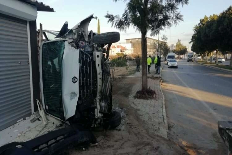 Ermenek Mahallesi Kardeş Kentler Caddesi mezarlık karşısında kimliği henüz öğrenilemeyen sürücünün kullandığı 07 BBU 540 plakalı minibüs, yol kenarındaki 2 ağaca çarparak devrildi.
